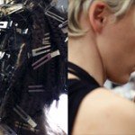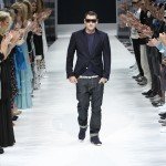 Access was tight, as the theater’s preparation areas for the show were unusually small for a runway show of this scale, and the press was frenzied trying to get a picture of rising star German model Toni Garrn. The indoor runway constructed to show background buildings and even a reflecting pool on stage felt a bit like a cell block corridor in a prison because of the long  close straights of the buildings.