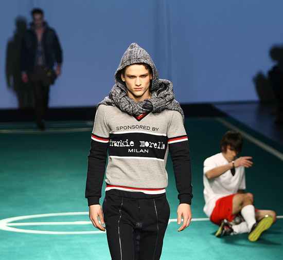 Italian football is a summer game, and this is an autumn/winter collection, but this is Frankie Morello. Their web site barks at visitors and there are vampires on the runway, so pretty much all bets are off for these guys playing by the rules.