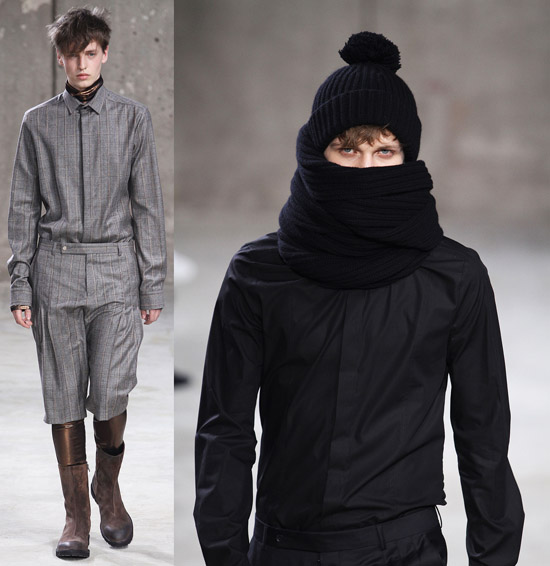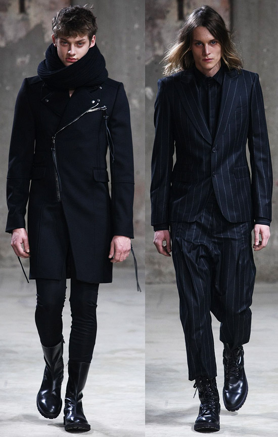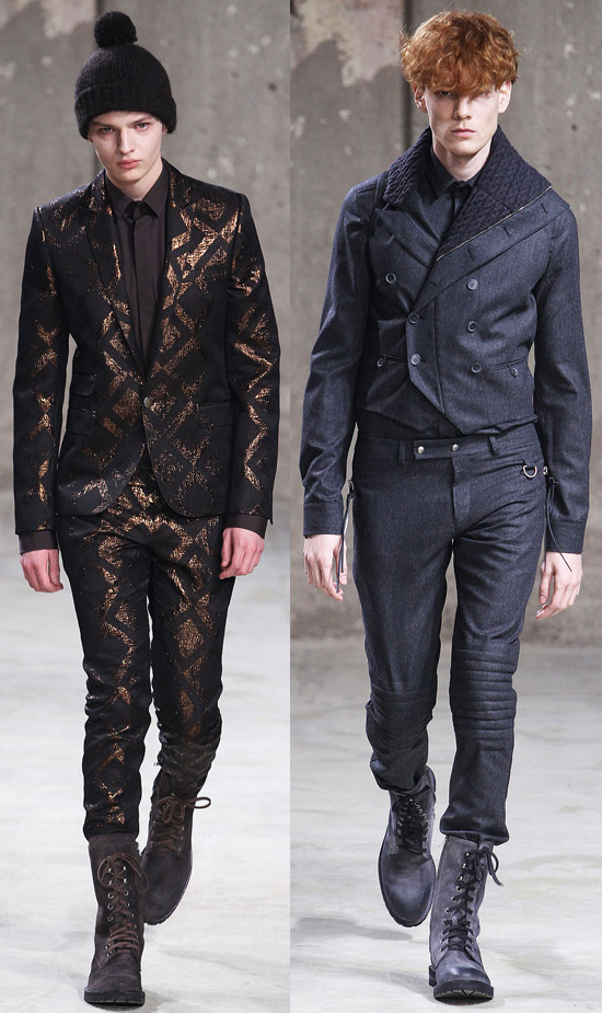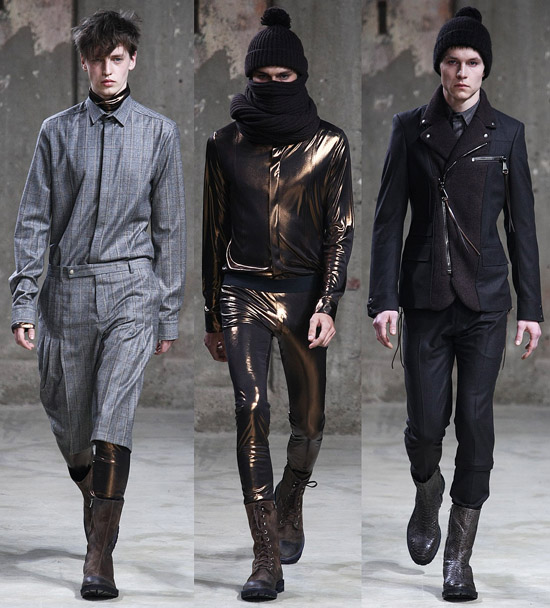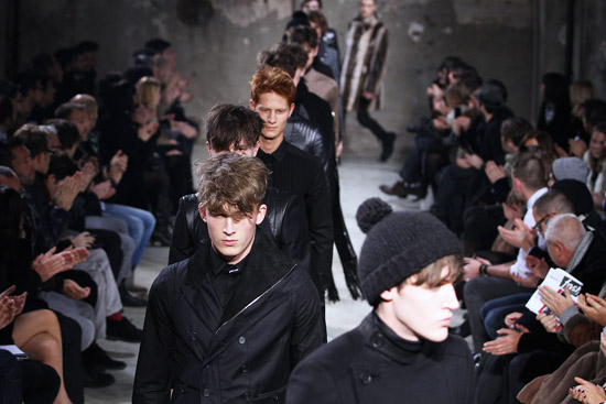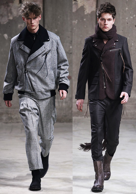 If you look at our backstage video from the Fall 2010 show, you can definitely see a lot of the same parts, pieces, and patterns, and nothing in the new show jumped out as being particularly innovative. The expert tailoring and fit is still there, it is still luxury clothing, but this show felt like a rehash of what they’re already selling. The asymmetrical zippers, although new for these guys, have been on a lot of runways lately. The key difference between this season and the previous fall collection may be that many of these new looks seem a little more practical.
