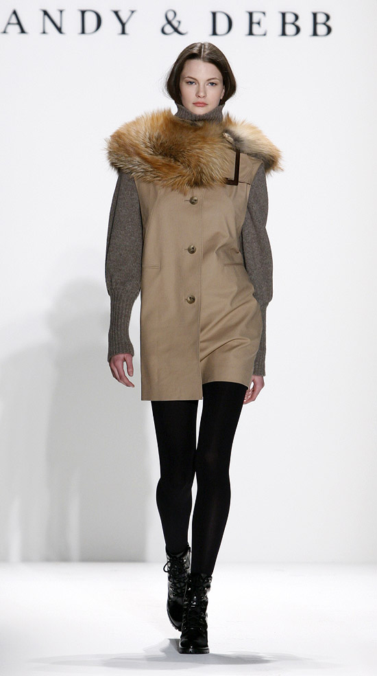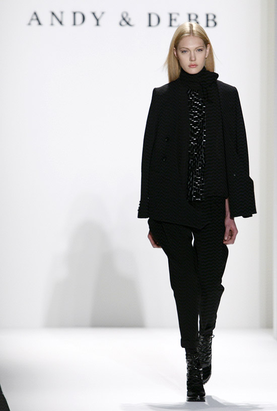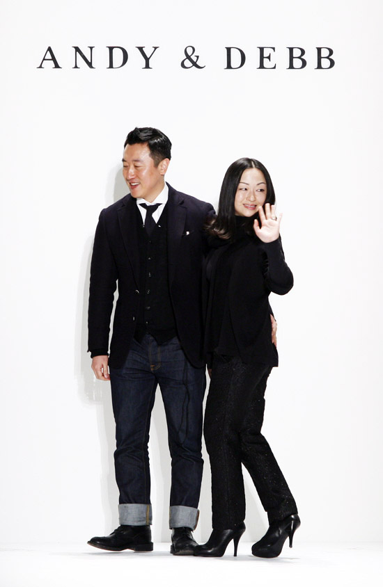 Andy Kim and Debbie Yoon, husband and wife designers of Andy & Debb, presented a mixture of textured, sequined, and metallic garments as their fall 2010 collection.