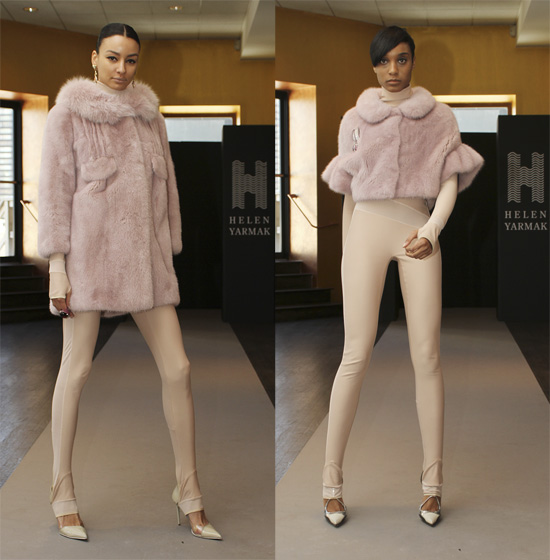 Put simply, the inspiration for Helen Yarmak’s latest collection was, as the designer said, “happy people.” Known for producing luxury outerwear, Yarmak gives traditional luxury pieces a modern edge by adding cosmetic distractions such as crystal embellishments on a capped sleeve coat or an exaggerated pink zipper on an orange dyed cropped fur coat. The result is a fun cotton candy vibe for otherwise antiquated garments.