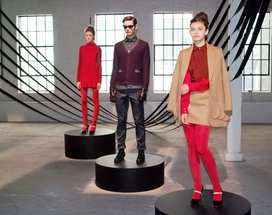 Tweed coats, beautiful silky red dressed, tan camel hair jackets with pleated accents, and flirty feminine coats were featured on the girls, and in particular, one stand out look included a full out red ensemble that looked as though it could go from Christmas dinner to the dance floor with only a quick change of shoes and lipstick.