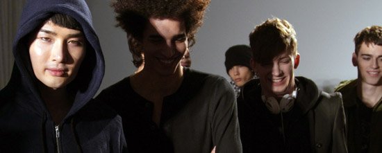 Used to seeing wool in it heaviest form as a coat, Choi experimented with wool and designed his tops from fishnet knits. The silhouettes were trim with some looser silhouettes with continued trendy drop crotch pants.
