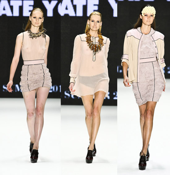 The collection as a whole played on the theme of desert life. The show was a sensual journey, beginning in the hot desert sun, and being carried out through nightfall.