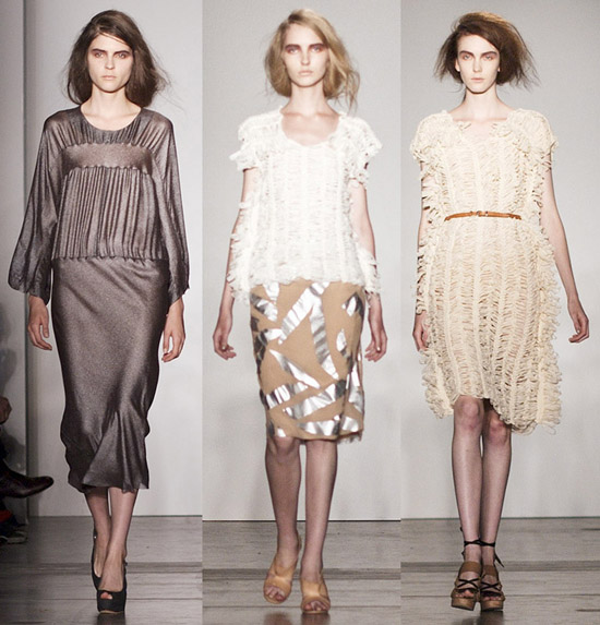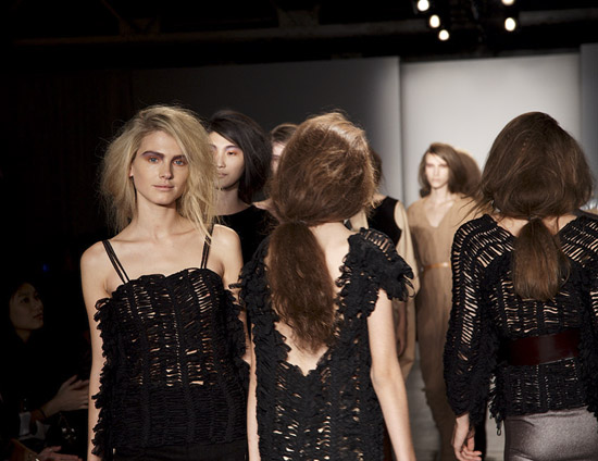It takes a defiant artist to embrace unbalanced and neurotic as a specific concept for inspiration. Mona Kowalska is not only defiant but exceptionally talented. It is the combination of her vision and skills that makes A Détacher one of the best labels in New York City. Her Spring 2011 collection was unique in its prints and fabrics, striking in its shapes and cuts, and most importantly bold in it’s presentation of the beauty of being slightly off.