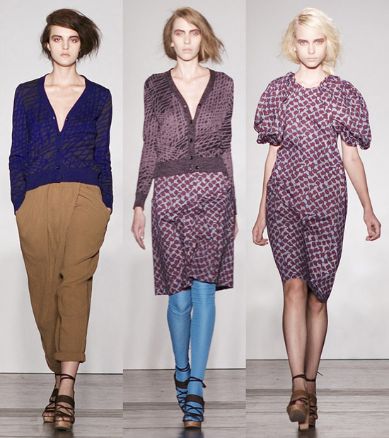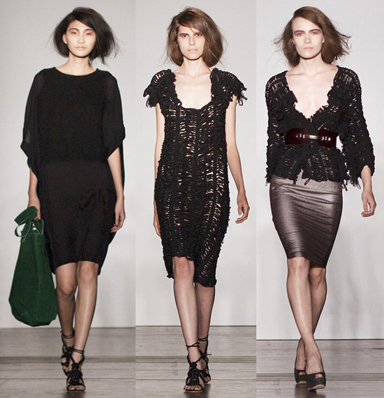 While A Détacher prints do garner much deserved attention, I’ve always loved Ms. Kowalska’s knits. She told me her knits usually play a complimentary role, but each collection there are a few knits which she considers to be stand-alone. One of my favorite knitwear pieces from her Spring 2011 collection was a very open black dress which was frayed and mock tattered in a marvelous manner. Special mention must go as usual to A Détacher’s shoes for the season, wooden cone heels and lots of straps, like the clothes certainly sexy but not in the usual way. A Détacher is an uncommon brand for an uncommon woman. You know her, the one you see occasionally who is sexy, intelligent, different, and possibly dangerous. You can’t help but watch her and think about her. What is it about her? What is it about A Détacher? The word, the word is esoteric.