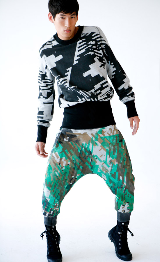 In a previous interview the designers indicated that the looks they show during fashion week are a nod to fantasy, but they believe the individual elements of the looks can work with less over the top ensembles to spice them up. Spicing up is definitely something American menswear needs, but it doesn’t seem to be catching on, and perhaps the fantasy is a little too overindulgent when the goal is to move product in a down economy. The crotch on some of the pants was almost a foot and a half below the waistline, and several looks featured elastic cuffs at the wrists, ankles, and even the midsection. A lot of consumers will probably look at some of these pieces and wonder if they are pajamas. Maybe this is too much risk to be offering to buyers right now. The duo still have not made a solid connection with a major retailer. If not picked up soon, this wildly creative label may have to be shelved or shut down, like so many others struggling to find their niche in buyers’ impressions of the temporarily tanked reality of current levels of consumer interest in exploration.