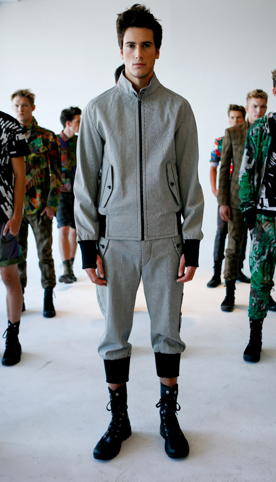 With their Spring 2011 collection, cousins Ben and Lee Copperwheat are continuing to push the envelope on the use of prints and refined tailoring for American menswear. This collection had a more militaristic feel, but not in any way you would expect if you weren’t already aware of the brand, being far less dress blues than implying some sort of army reserve unit stationed in Amsterdam for a little too long. It’s wearable but it’s really out there.
