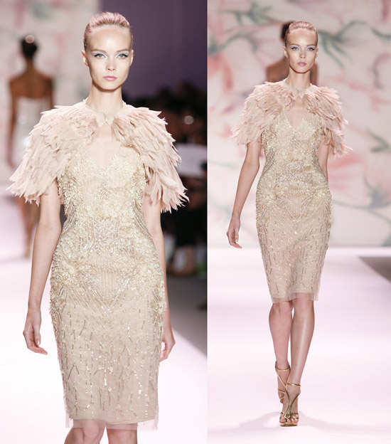 Imagination is one of the most indispensable qualities an artist can have. Unbounded talent will turn out stale copies of others’ work without imagination. Great artists always have great imaginations, and this vital resource affects them in two critical ways. The obvious is that they visualize things that nobody else does, but less understood is that their imagination, almost as if by sheer mass, shifts their perspective. Fundamentally, artists are artists because they see life differently. Monique Lhuillier is one of the great fashion artists working in America today and Ms. Lhuillier most assuredly must see this life differently than most. After recovering my breath from the beautiful breeze that was her Spring 2011 collection, I have but one question; can she teach me to see the world as she does?