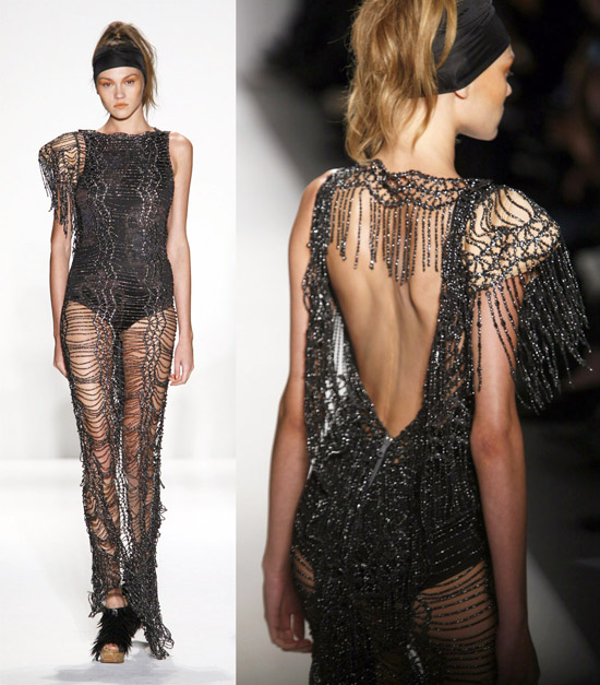 There were unfortunately a few dead spots where the clothing was not very inspired but could still be very commercially successful. There were fewer still some pieces were the “mail” treatment was gimmicky and pushed the clothes into costumes, and yet there were other times were it was astonishing. At the end of the day that particular element was probably used on about six to seven pieces too many. There was also a little bit too much similarity between pieces which caused the collection to drag. Vassilios Kostetsos Spring 2011 was in the main a solid effort. He’s great when he’s bold and dramatic and because of his tremendous skill level he can do virtually whatever physics allows. While I fully appreciate the fact that when designing a collection you have to try to create as broad an appeal as possible, it seemed to me that he really wanted to be freer to express his obvious love of glamor, sex appeal, and most of all passion. It is obvious that he can do whatever he wishes. I just left feeling a longing to see: what would happen if he did?