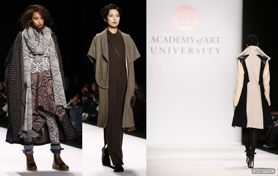 Thinking of Mercedes-Benz Fashion Week, which designer names pop up in your mind? DKNY? Michael Kors? Ralph Lauren? How about Academy of Art University? For 10 seasons the San Francisco art school has been bringing its graduate students to New York Fashion Week for their chance to shine. This season there were seven collections showcased by different designers, all with distinct and diverse approaches.