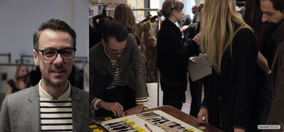 As described in his forward, Risto Bimbiloski’s Fall 2011 collection draws upon rebellious youth party days going through mom’s sophisticated closet on her way into the city and maybe even living in the suburban woods where the deer, and baby deer, are along with their horns and back uptown again. At least that’s how I see it, but it could be almost any city.